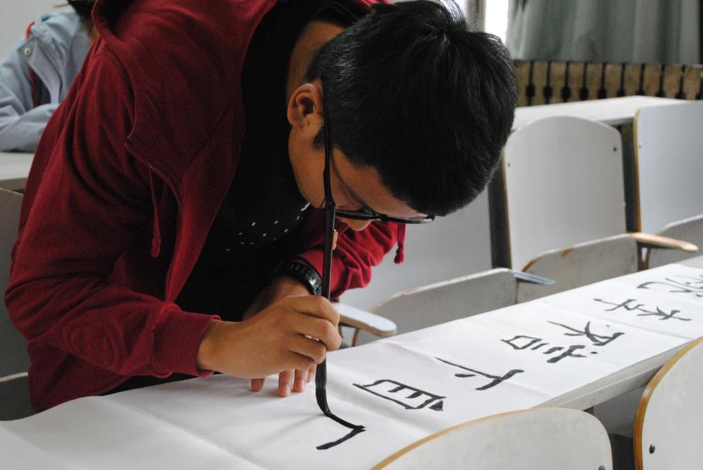 比赛伊始,主持人强调了比赛规则及注意事项,本次比赛由主办方提供纸张和黑板,选手根据编号入座并在十分钟内完成规定书法作品,比赛时,每位参赛人员全神贯注、用心书写每一个笔画、每一个汉字。钢笔字铿锵有力,毛笔字行云流水,粉笔字刚劲潇洒。所有作品结构匀称、笔画流畅、美观得体。最后,由评委老师进行现场打分,选出优秀作品参加探花视频