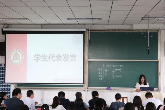 实习生代表李秋露分享了在实习中的各种体验与收获,同时向学院和指导老师表达了感谢。她表示,通过教育实习她深刻理解了教师职业的职责与担当,在今后的教学中一定会注重学生的个性差异,用心倾听他们的声音,积极关注每一个学生的成长成才。