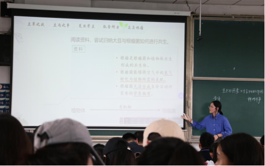 孙铭阳、李文琦两位同学作为优秀实习生代表在会上进行了精彩的教学展示。两位同学以生动的语言、规范的板书、清晰地讲解分别讲授了《细胞核的功能》《生物因素对生物的作用》两节课程,展现了探花视频