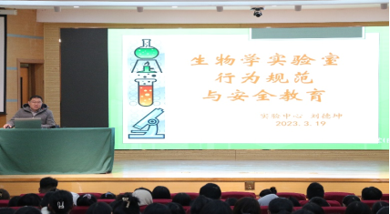 为进一步加强实验室安全管理,增强本科生实验室安全意识,3月19日上午,在孔子会堂成功举办了本科生生物学实验室行为规范与安全教育,特邀实验室刘德坤老师作安全报告。