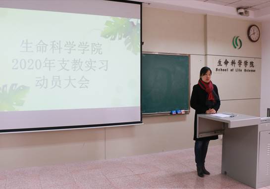 2020年支教实习动员大会在生物楼232举行,院党委副书记张明洁、副院长王仁君、17级辅导员杨珺斐,以及本次支教实习的指导教师参加本次活动。此次会议面向2017级生物科学(公费师范生)专业学生。会议由杨珺斐主持。