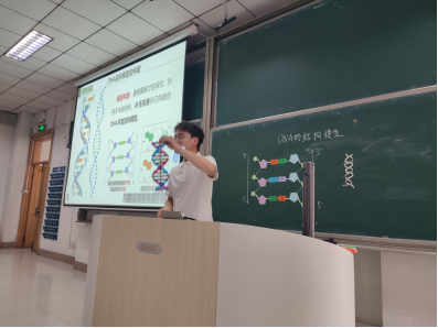 王延峰同学讲授了高中生物课程《DNA的结构》授课片段,他运用直观教具,通过系统梳理科学史详细讲解了DNA结构的发现过程。