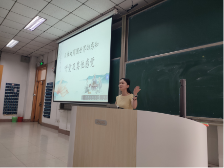 田俐蓉同学带来了初中生物课程《听觉及其他感觉》的教学片段展示,她以诗词导入,通过“一镜到底”式的串联讲解,详细阐述了耳的结构及听觉形成的过程。