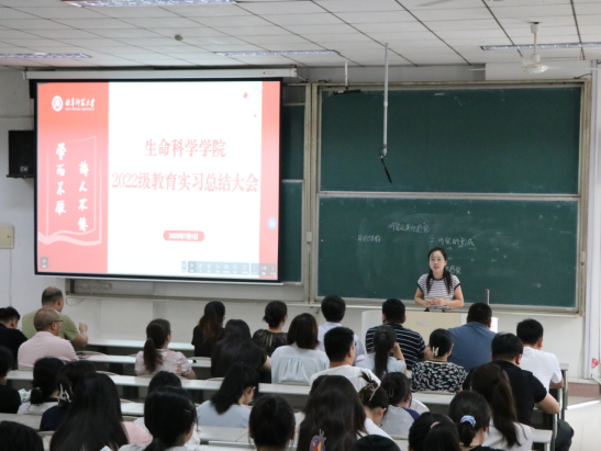 7月1日上午,学院在综合楼106教室召开2025年教育实习总结大会,副院长燕艳、生物教学论教研室主任郭永峰、全体教育实习指导教师、部分辅导员以及2022级生物科学(师范)专业师范生参加会议。会议由辅导员刘文静主持。