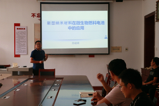 报告结束后,陈峻峰副教授与现场的青年教师们就研究内容展开了热烈的讨论,也对师生提出的问题进行了解答。本次报告使与会师生深入了解了新型纳米材料在微生物燃料电池中的应用的相关知识,也促进了不同研究方向之间的交流,进一步拓宽了大家的学术视野。