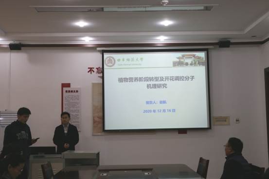 青年学者论坛2020年第九场报告——赵航博士报告会于生物楼208室举行。赵航博士为大家带来了题为《植物营养阶段转型及开花调控分子机理研究》的报告,报告会由曹博教授主持,学院部分师生参加了本次论坛。
