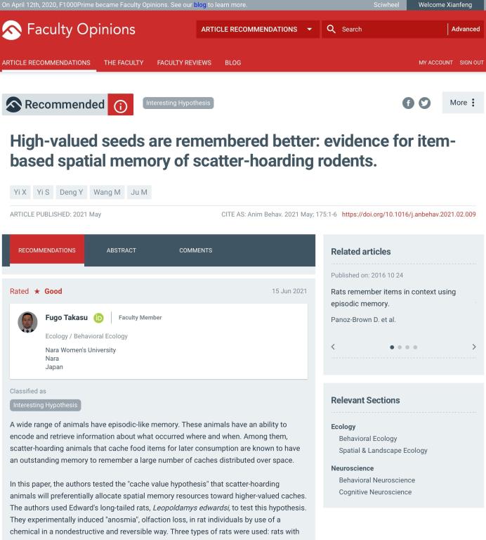 以来,在动植物关系和动物行为生态学领域潜心研究,先后获得山东省高等学校“青创人才引育计划”和国家自然科学基金面上项目资助,已在Journal of Ecology,Animal Behaviour,Frontiers in Plant Science,Microbial Ecology等国际期刊发表论文十余篇。近期发表在Animal Behaviour上的论文(2021, 175: 1-6),被国际生物医学领域重要的学术论文评估机构“Faculty Opinions”列为推荐论文。Faculty Opinions(原F1000Prime)由全球近8000名生物学和医学领域的顶尖科学家从每年所发表的生物医学论文中评选出不足千分之二重要文章,赋予“F1000”论文称号。