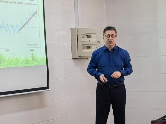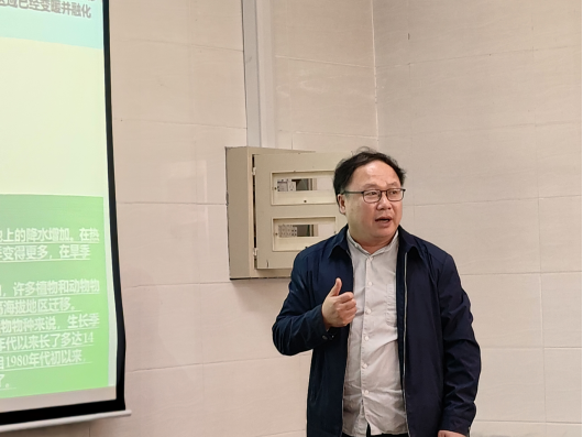刘滨辉教授以《中国气候变化主要特征》为题作了报告。刘滨辉教授主要从辐射和潜在蒸发、温度、降水、风速和干湿期、气候变化的影响等5个方面进行了介绍。