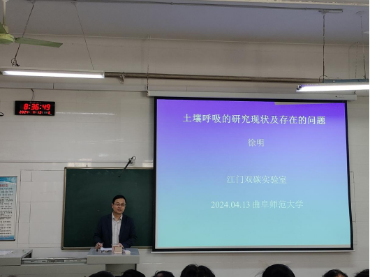 徐明教授以《土壤呼吸的研究现状及存在的问题》为题做了报告。徐明教授从呼吸对温度的敏感性等方面介绍了土壤呼吸的现状,从这些现状中找出了目前存在的问题,并进行了详细阐述。