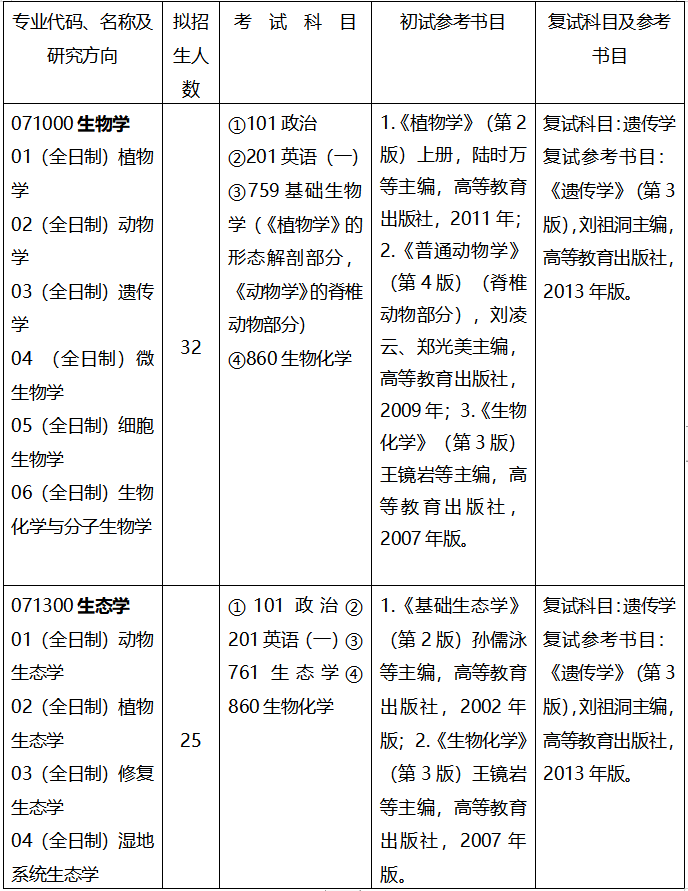 学院从2000年开始招收生物学课程与教学论方向的研究生,2001年招收动物学硕士研究生,2011年获批生物学、生态学两个一级学科硕士学位授予点,2018年获批生态学一级学科博士学位授予点。现可招收生物学、生态学、生物学课程与教学论三个专业的学术型研究生和学科教学(生物)方向的专业学位研究生。目前在校研究生、教育硕士近200人。