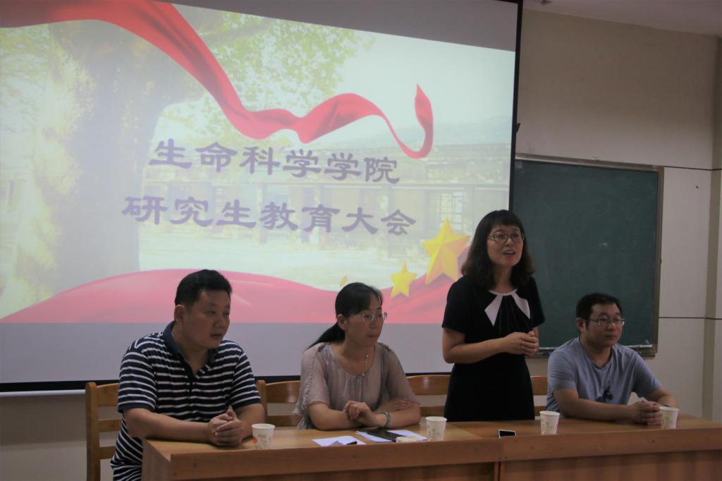 在生物楼232多媒体教室举行全体研究生教育大会。会议由主管研究生工作的副院长王仁君教授主持,研究生秘书燕艳老师、科研秘书李玉建老师、实验室秘书刘德坤老师出席了此次会议。