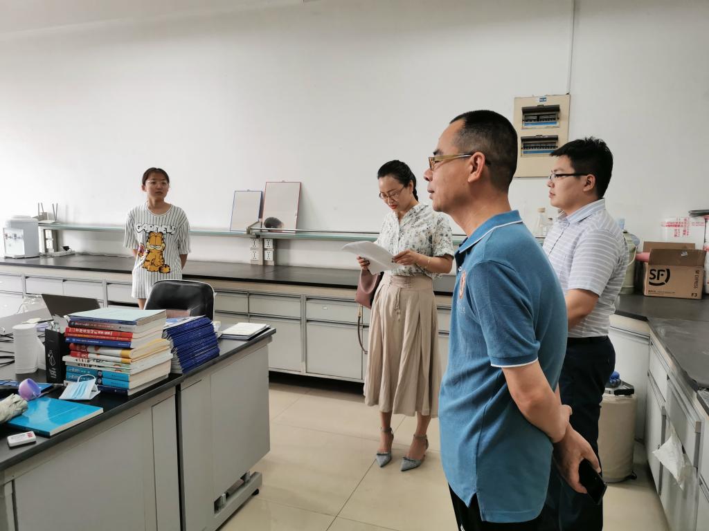 为认真贯彻落实学校关于实验室安全会议的通知,进一步做好实验室安全工作,2020年6月10日上午,院党委书记李志广、院长助理燕艳、研究生辅导员郭春晓、研究生秘书赵超对学院研究生所在的实验室开展了安全检查。