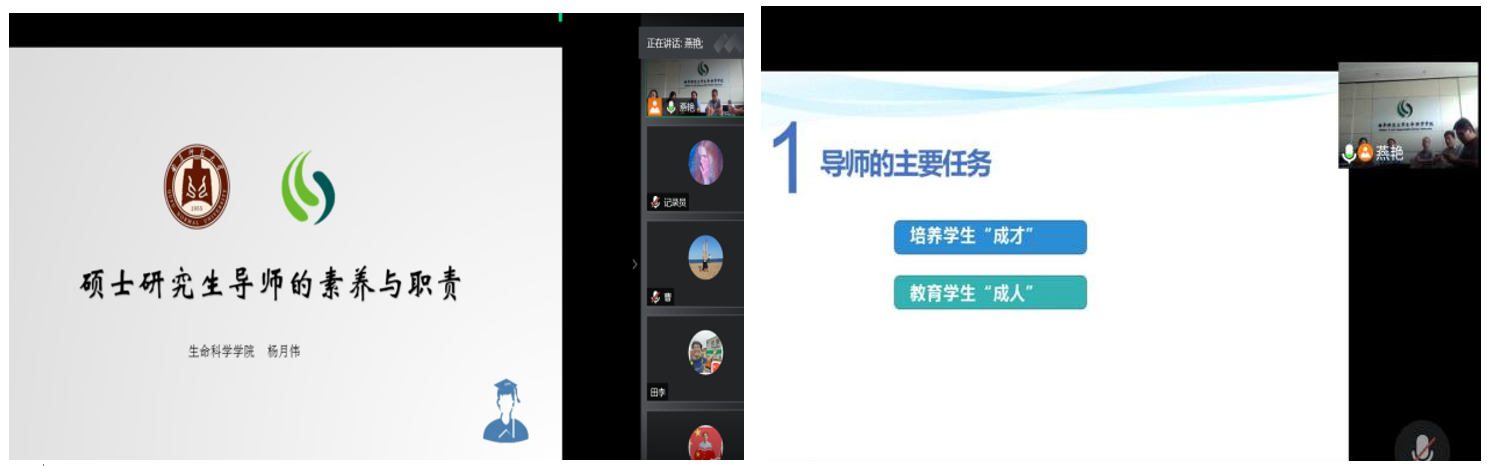 杨月伟在进行“研究生导师素养与职责”培训时,对导师应具备的基本素养、导师的职责与情怀进行了详细介绍,并结合学校《全面落实研究生导师立德树人职责实施细则》等相关文件,对如何成为一名优秀的导师进行了诠释。杨月伟指出,“研究生导师是高等院校内学术造诣最深、科研能力最强、最富创新精神的一流师资”,并要求所有导师“以做人为基点,以做学问为途径,勇担重任,科研育人,做一名优秀的研究生导师”。