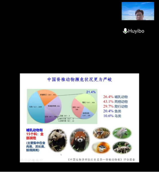 2022年6月15日,中国科学院动物研究所胡义波研究员线上报告会成功举办。胡义波研究员为大家做了题为“濒危哺乳动物演化保护基因组学研究”的学术报告。报告会由校长张洪海教授主持,学院部分教师和研究生参加了此次报告会。