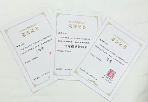 燕艳老师指导的武晨旭同学荣获全国一等奖,秦海明老师指导的任静同学荣获全国三等奖,燕艳老师荣获“优秀指导教师”奖。