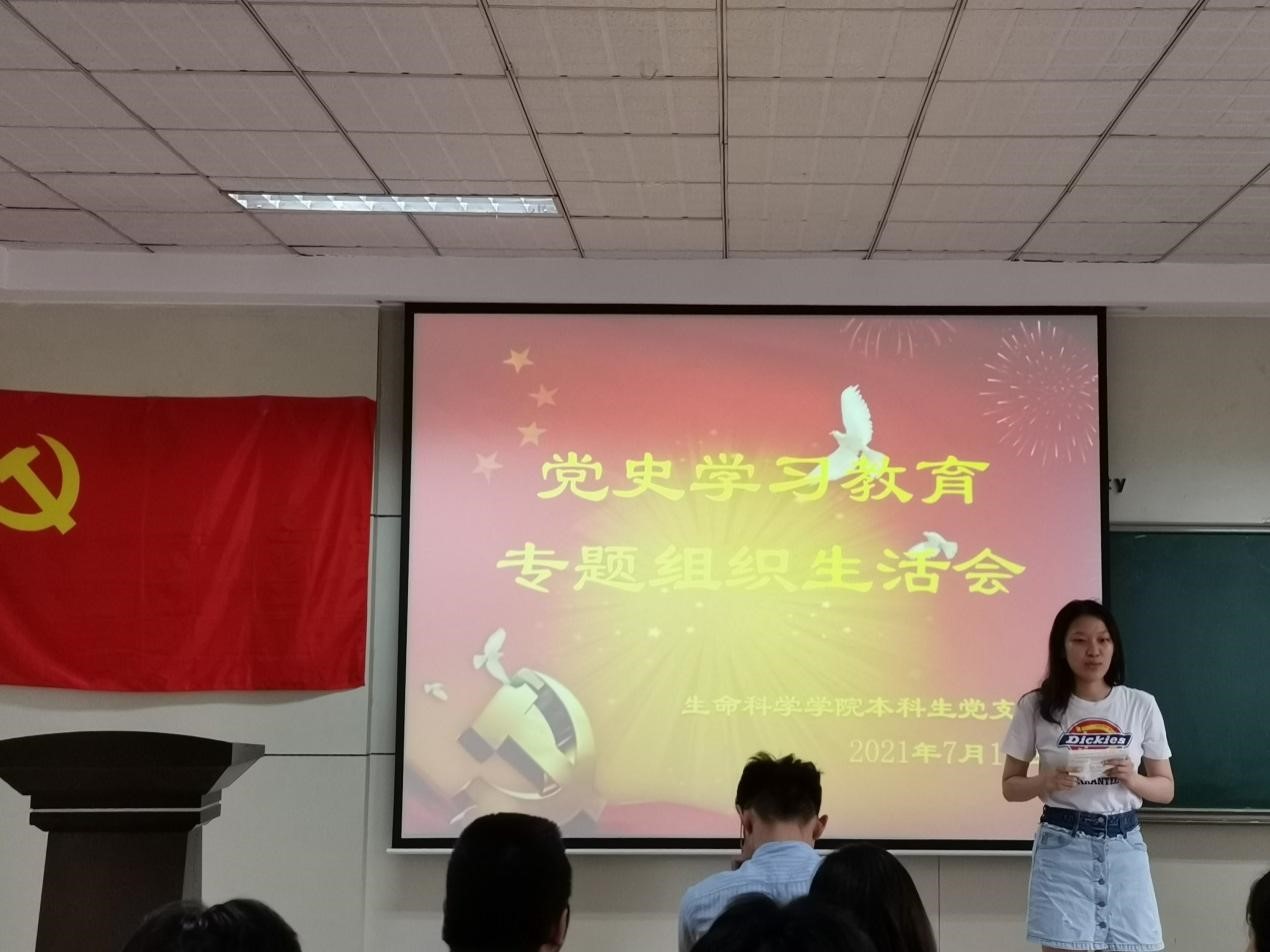 本科生党支部党史学习教育专题组织生活会在生物楼232顺利进行。