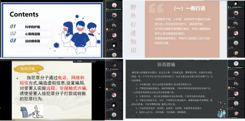 在大数据开枝散叶的今天,信息泄露,各种网络诈骗随之而来。王琦同志结合实例分析了学生易受骗的原因,总结了常见的几种诈骗手段,并与同学们分享了电信(网络)诈骗的防范措施。王叶青同志结合实例从用电防火、实验室安全、校园防骗等方面与同学们分享了大学生人身安全防范措施,并提出安全无小事,警钟要长鸣。