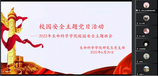为深入贯彻落实党和政府关于加强安全生产工作的决策部署,牢固树立以人为本、安全发展的理念。普及安全知识,弘扬安全文化,提高全体同学安全意识和素质,提升安全文化建设水平。6月21日晚,学院研究生党支部与院研究生会联合举办校园安全主题党日活动。