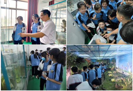 随后,研究生党员带领中学生自由参观了实验室和标本馆,近距离接触了水生、陆生等不同的生物类群,并根据学生特点讲解了相关现代生物学科学技术和知识。参观过程中,研究生党员与中学生们进行了学习、生活等各方面的交流,引导同学们树立正确的生命观,形成积极的学习态度。