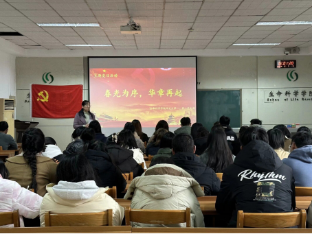 研究生第一、二党支部联合开展“春光为序,华章再起”主题党日活动。本次活动由研究生第一党支部书记燕艳主持,研究生党支部书记郭春晓老师及全体党员参加。