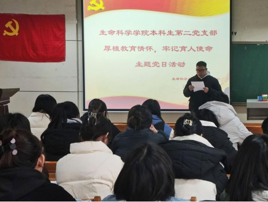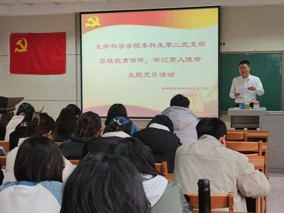 本科生第一、二、三党支部于生物楼232室联合开展“厚植教育情怀,牢记育人使命”主题党日活动。本次活动由本科生第一党支部书记杨申振同志主持。