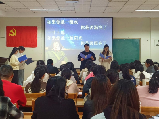 本次活动通过歌曲演唱、诗歌朗诵这一汇报演出的形式,感悟雷锋精神的永恒时代价值。活动现场,10名党员代表诵读了《雷锋日记》的经典篇章。诗歌朗诵铿锵有力,把“雷锋同志爱党爱国、全心全意为人民服务的坚定意志和高贵品格”深深地镌刻在青年党员心中。演出最后以齐声歌唱《奔跑》曲目收尾,大家用真挚热烈的情感和激情飞扬的演唱,展现了新时代人人学雷锋、人人争做雷锋的精神风貌。