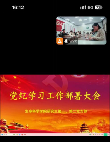研究生第一党支部、第二党支部于4月19日下午召开了党纪学习工作部署大会,深入学习贯彻《中国共产党纪律处分条例》。会议由研究生第一党支部书记燕艳同志主持,采用线上线下相结合的形式,全体研究生党员参加会议。