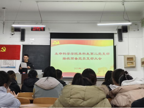 本科生第一、二、三党支部于生物楼召开接收预备党员支部大会。