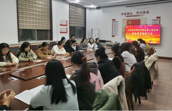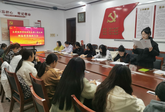 研究生第二党支部于2023年11月22日在生物楼208召开了预备党员接收大会,本次会议采取线上线下相结合的形式开展。支部书记郭春晓同志主持会议,支部全体党员参加会议。