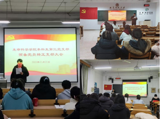 本科生第一、二、三党支部分别在生物楼232室、229室、317室召开预备党员转正大会,讨论、票决预备党员的转正事宜。本次会议由各党支部书记主持。