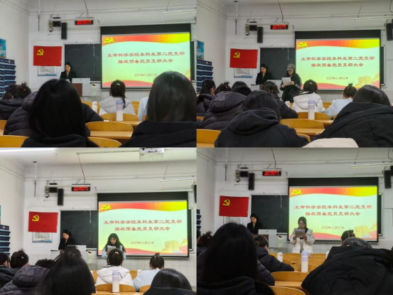 本科生第二党支部于生物楼229室召开接收预备党员支部党员大会,第二党支部全体党员参会。