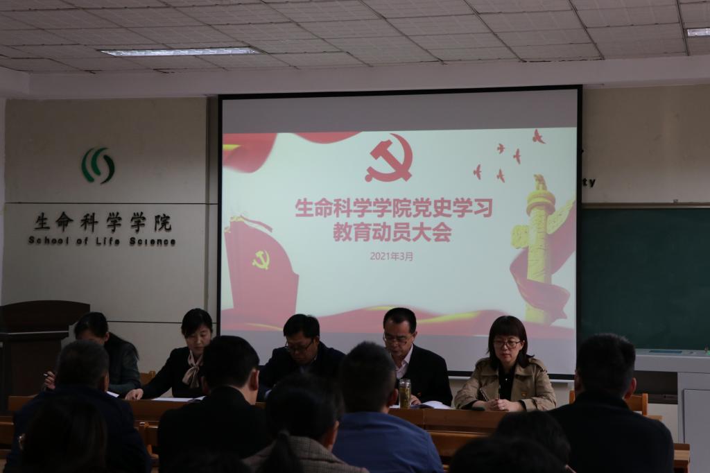 党史学习教育动员大会在生物楼232会议室顺利召开,本次会议由学院党委副书记张明洁主持,学院领导班子、全体党员师生参加。