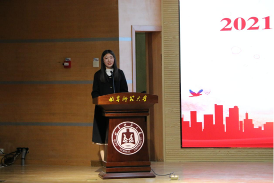 包颖教授作为教师代表,用幽默风趣的语言鼓励大家保持好奇心,学会思考、勇于创新,扎实学习专业知识,提升综合能力,在大学这个全新的舞台,需要一如既往的努力,在四年后摘下胜利的果实。紧接着,老生代表许优以参加山东省师范类高校学生从业技能大赛为切入点,分享了作为师范生如何才能更好提高教学技能,提升自身专业素养,做到知行合一,以行求知。