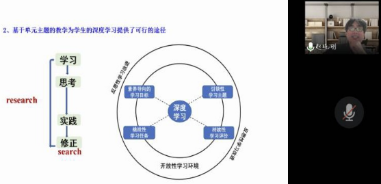 赵晓刚从北京市第四中学建校以来的辉煌成就及办学特色入手,介绍了北京市第四中学生物学教学特色、团队组成,阐述了高水平专业的教师队伍对高质量学生培养的重要作用,并从学生角度、教师角度、生物学科角度,详细解读深度学习的内涵和教学体系,提出了“学习——思考——实践——修正”的教学途径。他结合“新冠病毒的免疫机制”“胰岛素影响下血糖平衡调节”“目的基因和表达产物的检测”三个实际教学案例,直观具体的向与会师生展现了如何开展基于深度学习的生物学大单元教学。