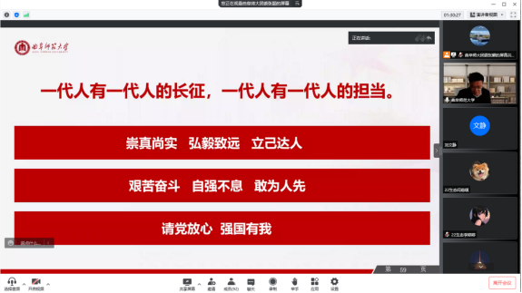 领导班子、辅导员、2022级生物科学一班学生、部分学生代表线上参会学习。