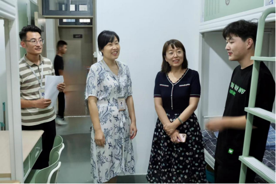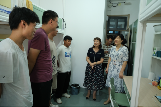 9月10日,学院领导深入走访了新生宿舍,检查各项生活保障服务工作,并与新同学亲切交谈,了解他们入学报到和对学校生活环境适应情况。院长王仁君教授勉励新同学要尽快适应环境,快速转变角色并积极融入,有计划地安排自己的大学生活,迈好大学第一步,开启青春逐梦新航程。