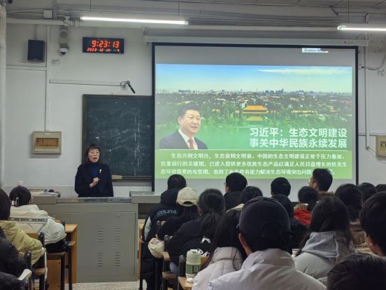 学院院长王仁君以“生态文明建设事关中华民族永续发展”为题,带领学生深入学习了习近平生态文明思想,加深对习近平生态文明思想的深刻内涵和战略意义的理解。她讲到,作为生命科学领域的学生,要深刻理解生态文明建设关乎人类未来的重要性,要主动肩负为国家生态文明建设贡献力量的职责和使命,坚定树立“建设绿色家园、建设美丽中国、加快推进人与自然和谐共生的现代化”的信念,主动接过重担,共同发力,建设绿水青山家园,建设繁荣富强的祖国。