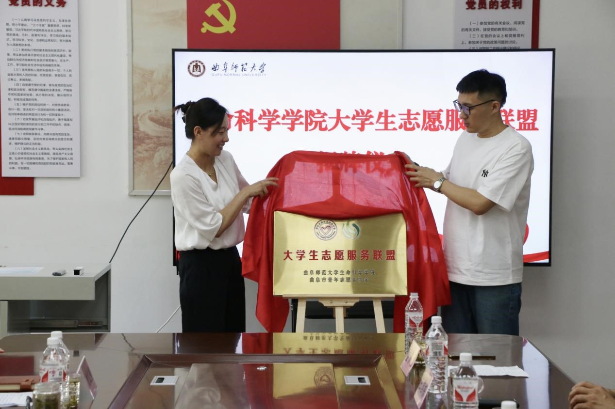 团委副书记张颖和曲阜市青年志愿者协会会长孟鲁俊共同为探花视频
