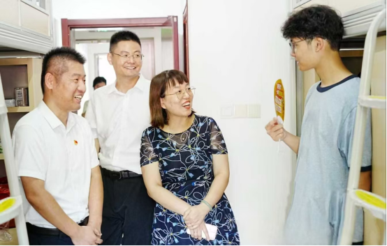 为做好2024级新生入学报到工作,学院党委书记李志广、院长王仁君、党委副书记王建龙来到迎新现场,慰问志愿者、看望新同学,详细了解新生报到情况,并前往新生宿舍,与新生及家长们亲切交流。