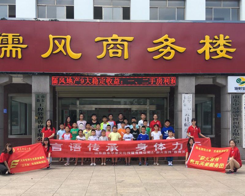 团委书记孙金玲老师与赵金贵老师签订社会实践基地协议,并举行挂牌仪式,在后续社会实践活动中,同学们首先亲临课堂学习,体验如何教授孩子们知识,其次,与老师进行亲切沟通,参与到课堂中去,课间与孩子们一起做游戏,体会孩童般的快乐。事先了解到赵金贵老师作为非物质文化遗产项目《山东快书》代表性继承人,所以我们对赵老师进行了采访,了解到《山东快书》的起源与发展前景,同时赵老师也教给我们一段快书的拿法与唱法。