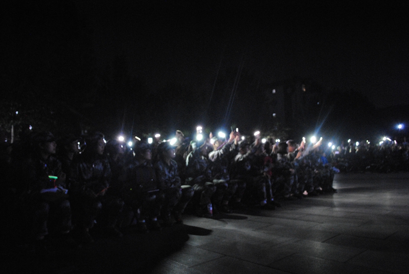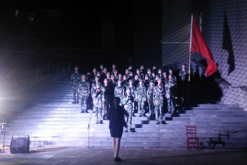的激扬的热情。他们优异的表现为自己迎来了阵阵掌声。比赛中间也穿插着每个班级奉上的优秀节目,优美、高亢的集体歌声如天籁般动听;舞馆带来的舞蹈激情澎湃;个人的独舞优雅动人;小品令人捧腹大笑。师哥师姐献上歌曲祝福新生,一个个精心准备的节目让在场的观众一饱眼福。最后晚会在观众们不绝的掌声中圆满落下帷幕。这场掌声不断的晚会给每位新生和新生教官以美的享受。