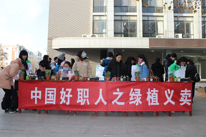 于大学生活动中心前举行“绿植花卉生物特色产品”义卖活动。以让人容易接受的义卖形式使同学们亲身体验职场情境,锻炼了同学们的反应、表达和人际交往能力。
