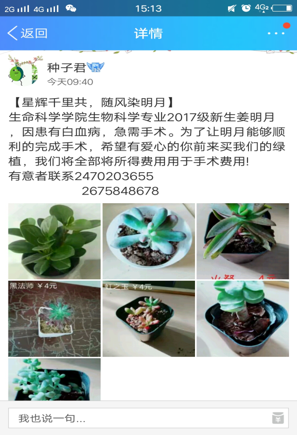 团委、学生会还开展了一些后续的援助,开展了绿植义卖活动,义卖所得1,268.7元也已全部捐出。