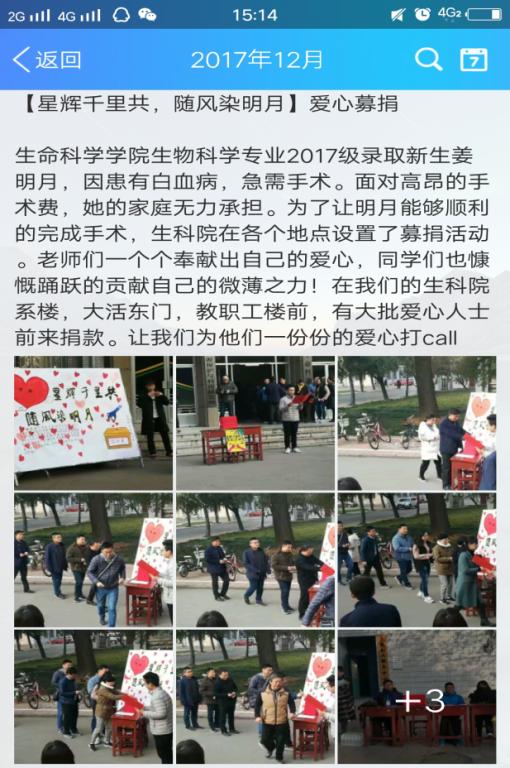 2017级新生姜明月同学的全校范围内的爱心募捐活动已经结束。