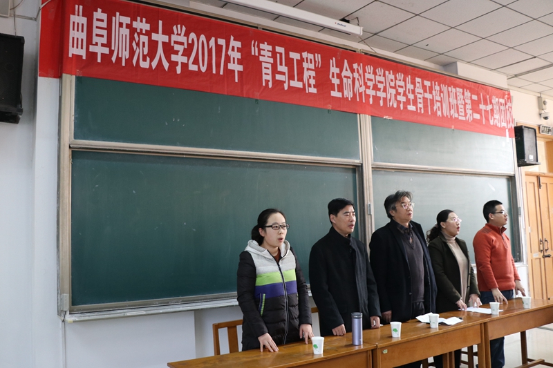 党委副书记赵强老师、团委书记孙金玲、2016级辅导员刘洪铎老师、刘文静老师、马克思主义学院陶正付老师出席本次开班仪式。
