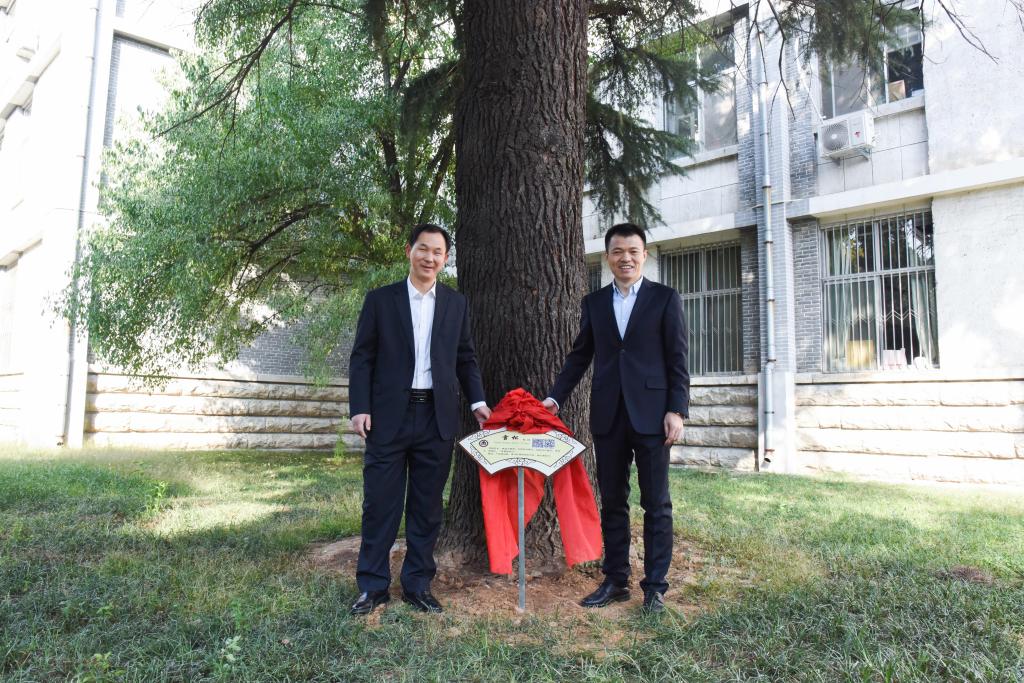 仪式上,辛杰和张隆海共同为铭牌悬挂揭牌。校工会主席王万民介绍了校园植物铭牌悬挂筹备、开展情况。