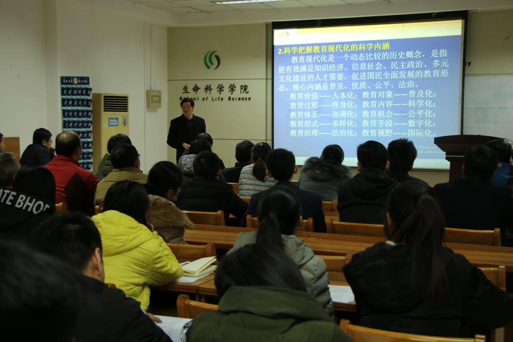 二.结合实际交流思想体会。在组织开展集中学习的基础上,采取领导带头宣讲十九大精神,1月3日下午3点,党委书记徐来祥同志作题为“深入学习领会党的十九大精神,推动学院工作新发展”的宣讲报告,从三个方面向同志们阐述了个人的学习体会。第一,党的十九大精神主要内容的学习;第二,新党章学习的认识;第三,学习十九大精神,推动学院工作新发展。最后,徐来祥教授在报告总结中指出,一定要“学懂、弄通、做实”十九大精神实质和深刻内涵,在其指导下更有干劲的投入到工作学习中去。