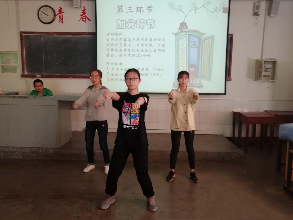 本次比赛为线下活动,共分为三个环节。第一个环节为快手理乱麻,每两个人一组,三组同时进行叠被以及整理现场生活物品,参赛时间为4分钟,每人在规定时间内完成各项任务,争分夺秒,巧手整乱麻;第二环节为生活小妙招,选手按照抽签顺序上场展示自己的宿舍生活小技巧,巧招连连,创意无限;第三个环节为加分环节,该环节由与各参赛选手共同参赛的观众进行才艺展示,内容不限,可歌可舞或者其他独家生活小技巧的展示,同学们各显所长,通过唱歌、小品等表演方式秀出自己的才艺和技巧,让我们看到了生科院同学们的创意与激情。最后,经过一番激烈竞争,评委们最终选评出优秀获奖选手。此次大赛缓缓落下帷幕。