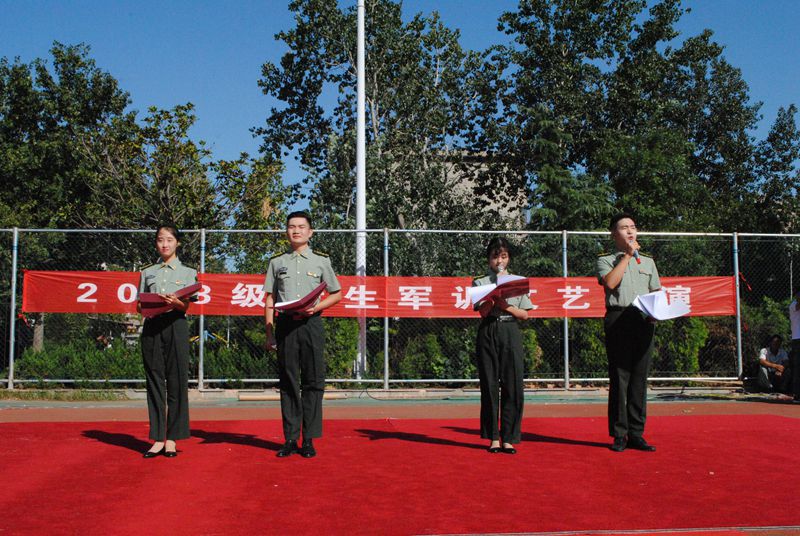 学子的热情向上。掌声欢呼声接连不断。合唱中间也穿插着许多优秀的节目。歌曲《旗开得胜》表现了新生的美好期望。相声《军训那些事》引得大家笑声不断。舞蹈《健美操》也展示了同学们的积极向上。最后军歌汇演在优美动听的《让我留在你身边》中结束。