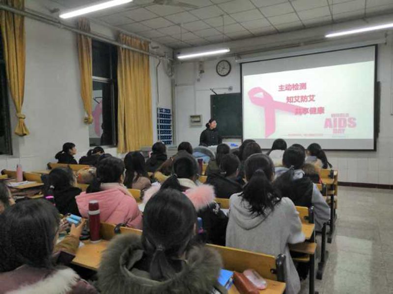 团日活动由该班团支书谭子笑主持。首先,团支书利用多媒体供大家学习了解艾滋病的相关知识及我国当下艾滋病现状;然后,团支书利用多媒体设备播放艾滋病的公益宣传视频;接着,同学们进行有关艾滋病的知识竞答;最后,同学们畅所欲言,谈谈自身对艾滋病的认知和对本次团日活动的自身感悟,并交流自己认为防范艾滋病的最有效措施是什么。同学们纷纷表示从自身做起,积极学习宣传艾滋病相关知识,远离艾滋,健康生活。